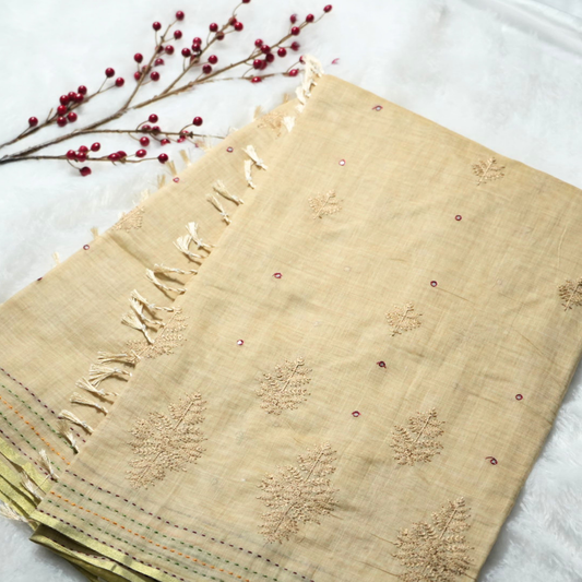 Embroidery and kantha stitch on cotton saree