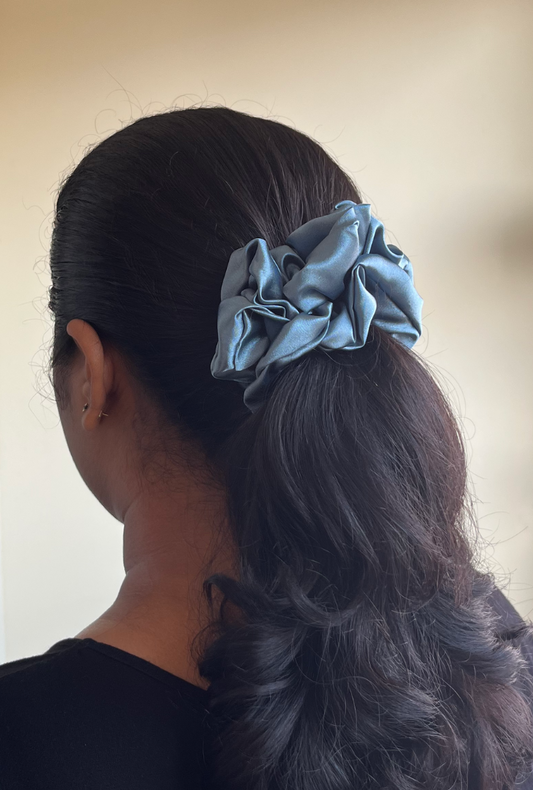 Teal blue large satin scrunchie