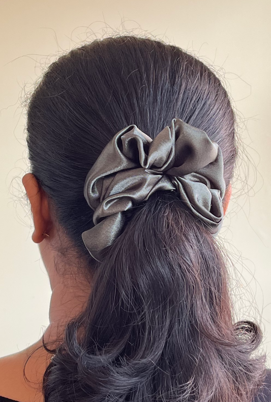 Black - Large satin scrunchie