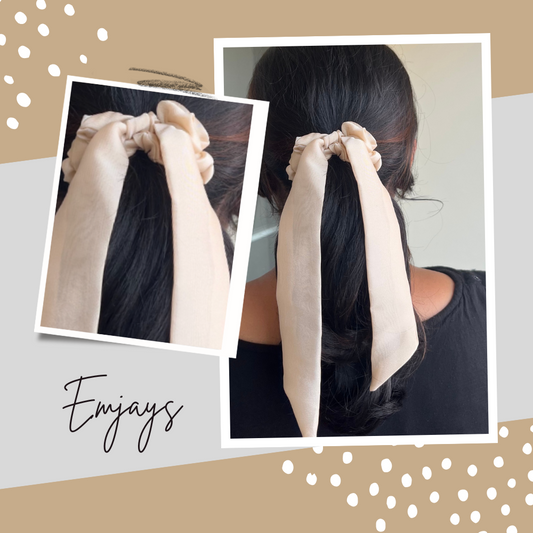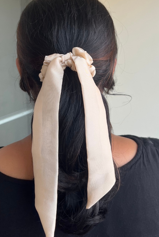 Beige - Tail Georgette Scrunchie