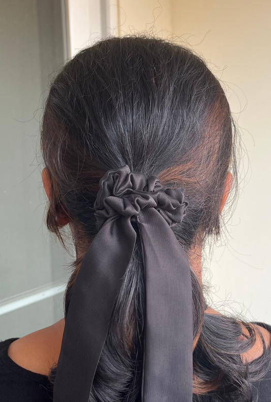 Black - Tail Georgette Scrunchie